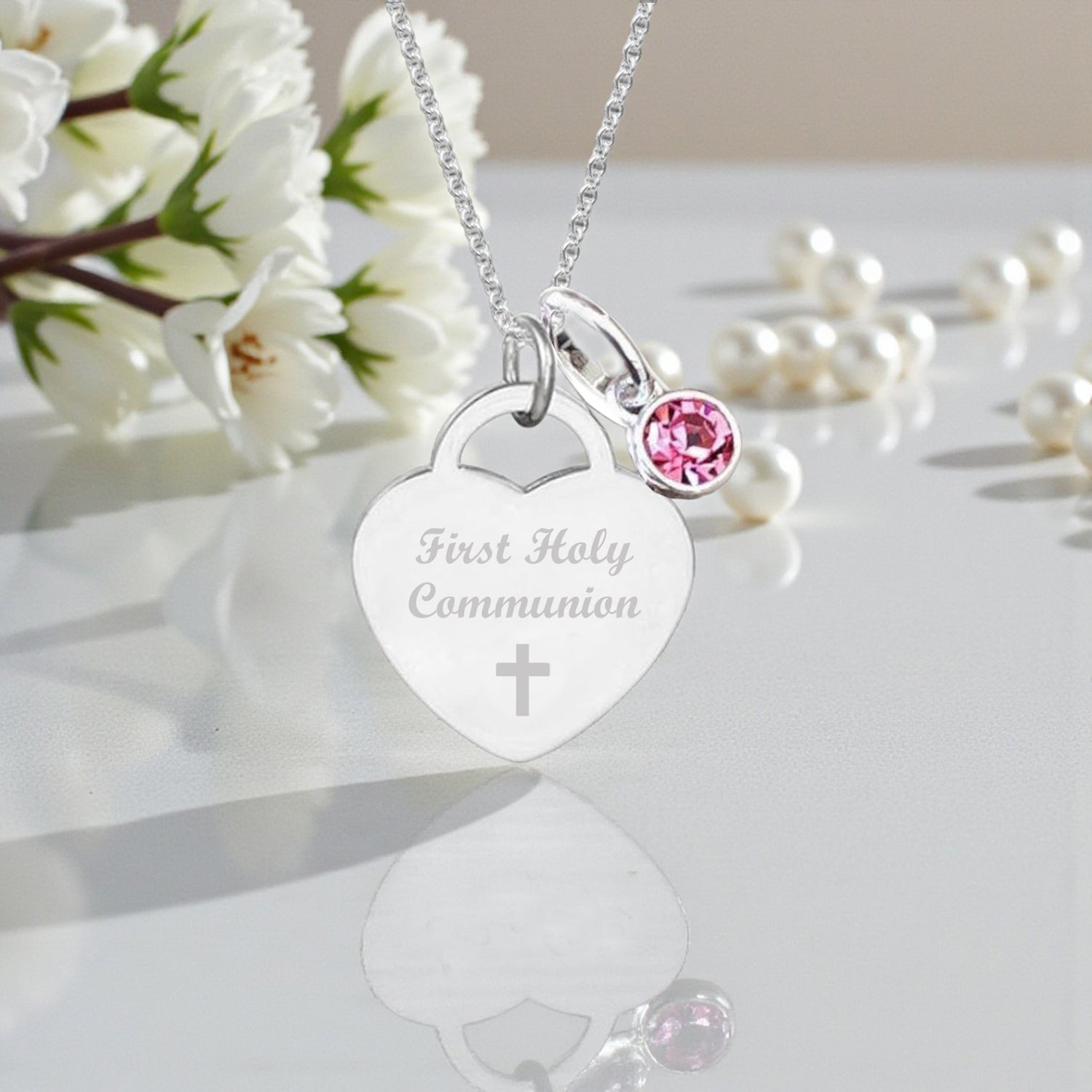First Holy Communion Gift | Cross Necklace with Birthstone 925 Sterling Silver | Personalised Jewellery Gift