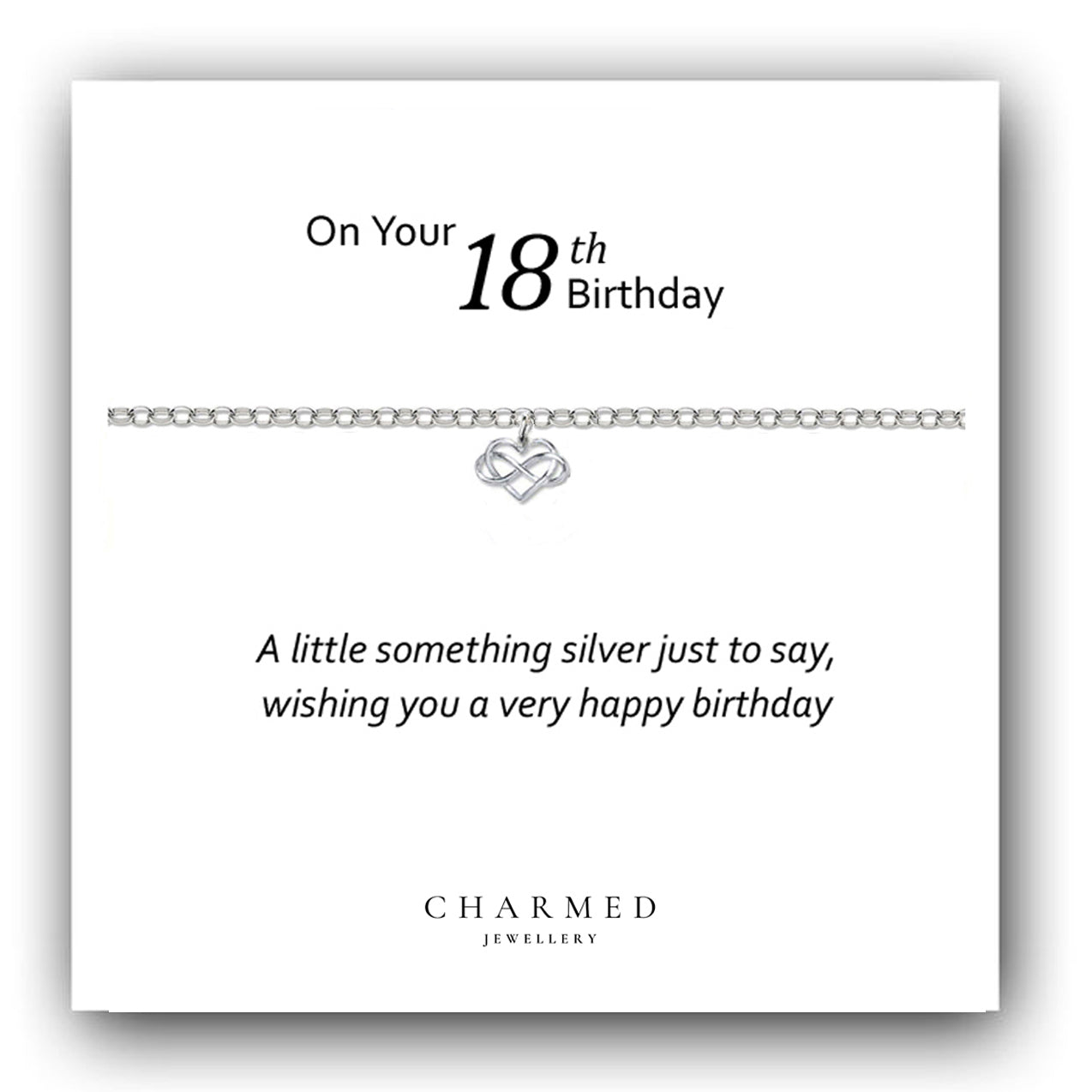 18th Birthday Infinity Heart Bracelet in Sterling Silver 925, Personalised Jewellery Gift