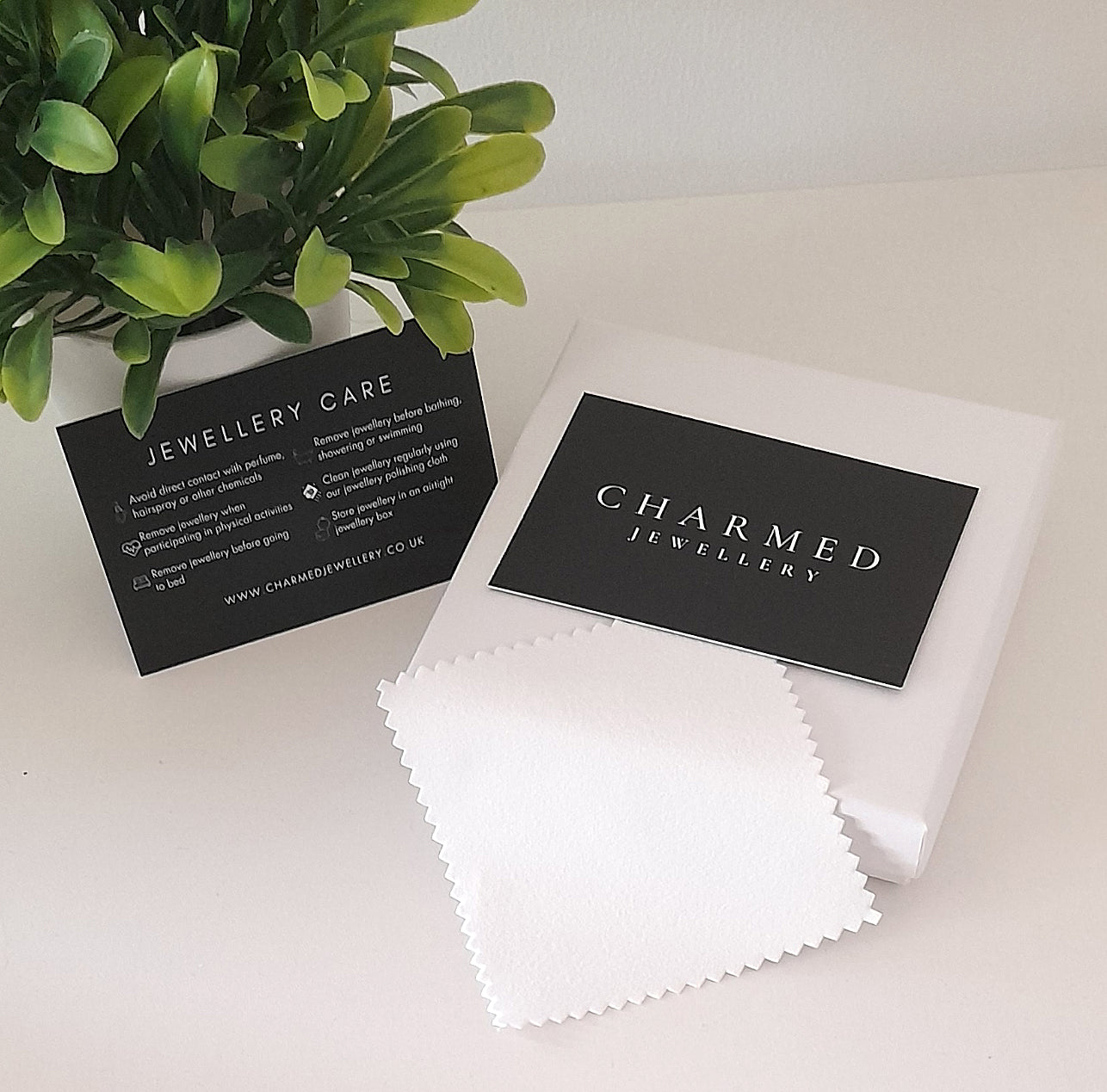 Presented in a luxury recycled gift box and includes a jewellery care card. Free with your purchase, is a silver jewellery polishing cloth, so you can prevent tarnish and keep your sterling silver jewellery pieces looking dazzling.