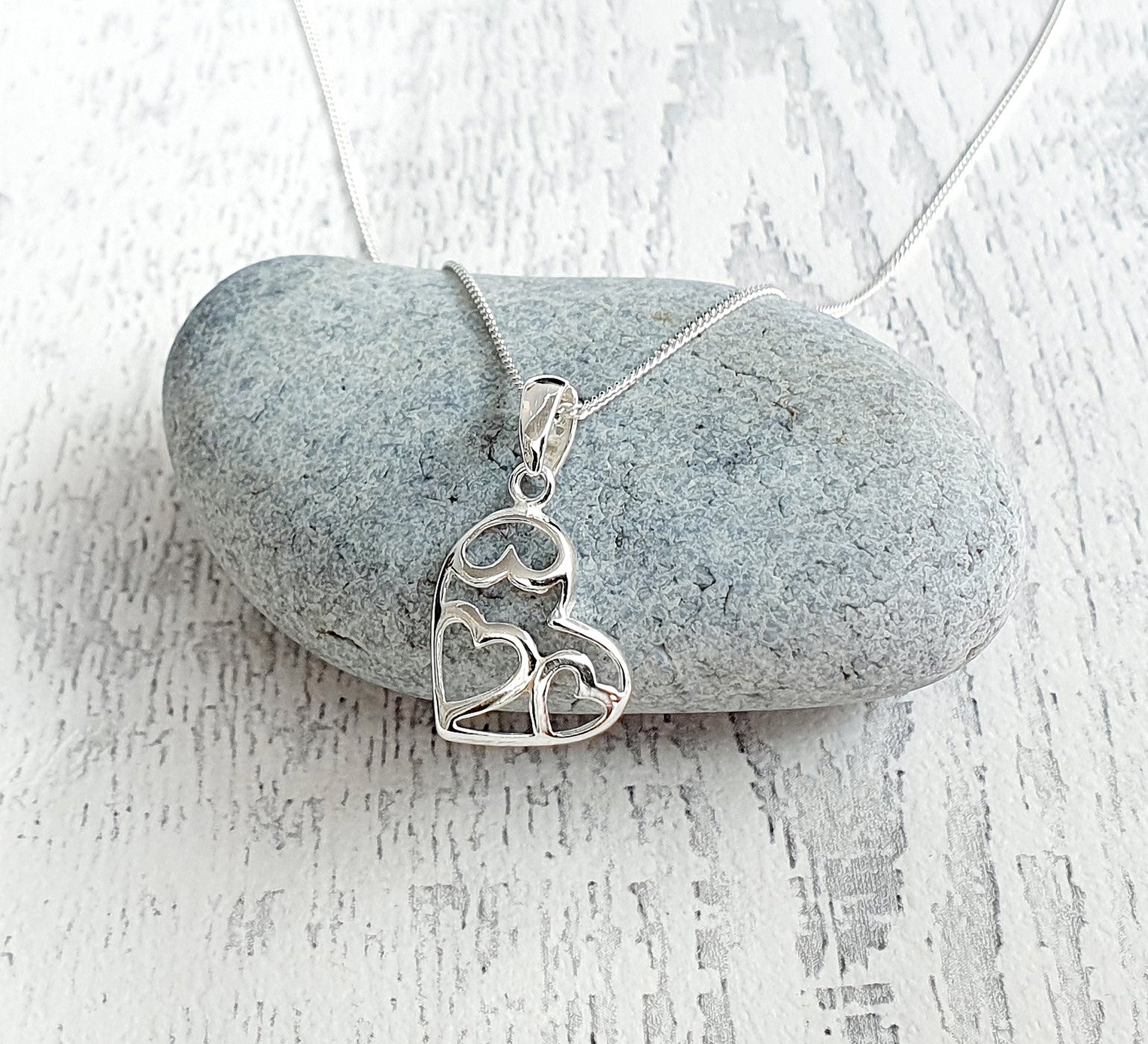 Stunning open heart pendant featuring a unique cut out hearts design in sterling silver 925. A perfect wedding gift for the Auntie of the Bride. Let her know how special she is, with this personal and unique gift.