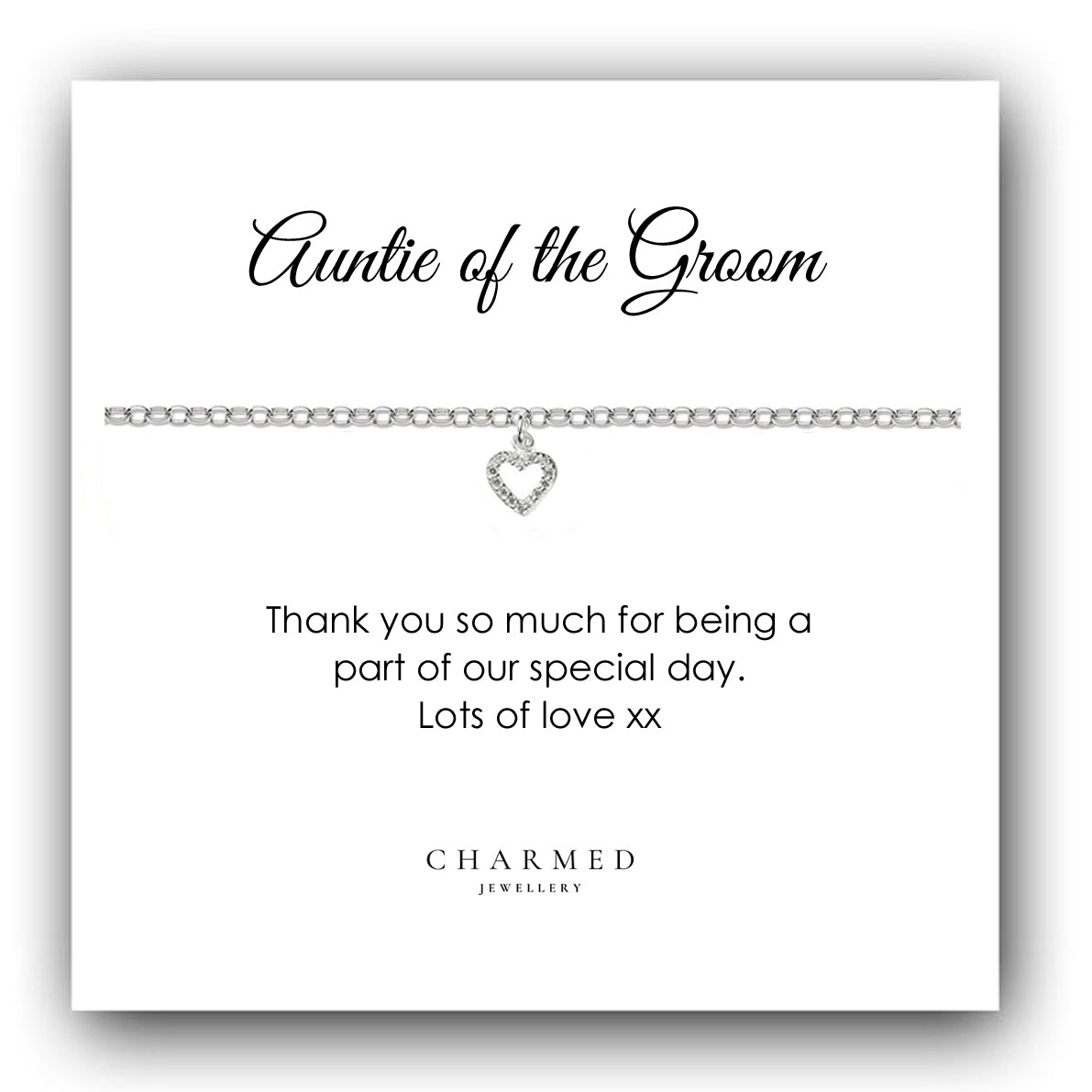 Auntie of the Groom Heart Bracelet with Cubic Zirconia in Sterling Silver 925, Personalised Jewellery Gift