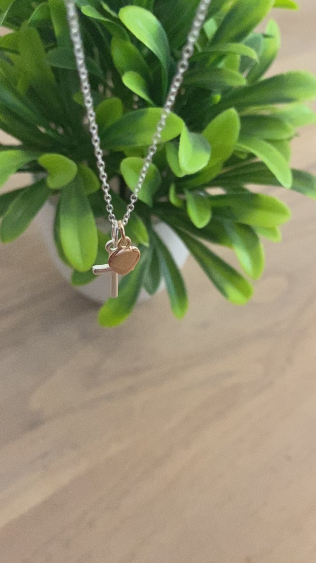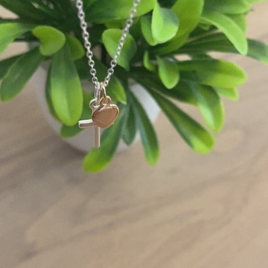 Baptism Cross Necklace with Rose Gold Heart in Sterling Silver 925 | Personalised Jewellery Gift