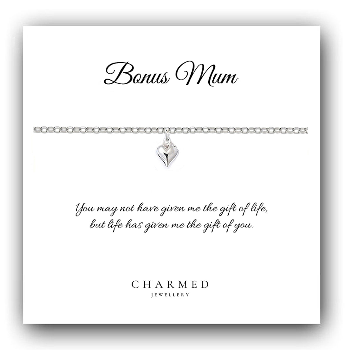 Choose this stunning heart bracelet as a beautiful gift for a bonus mum. A perfect personalised gift for her, to let her know how much she means to you.