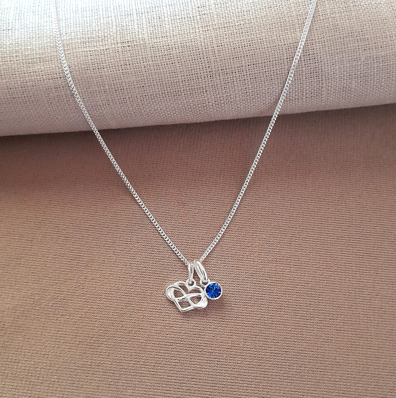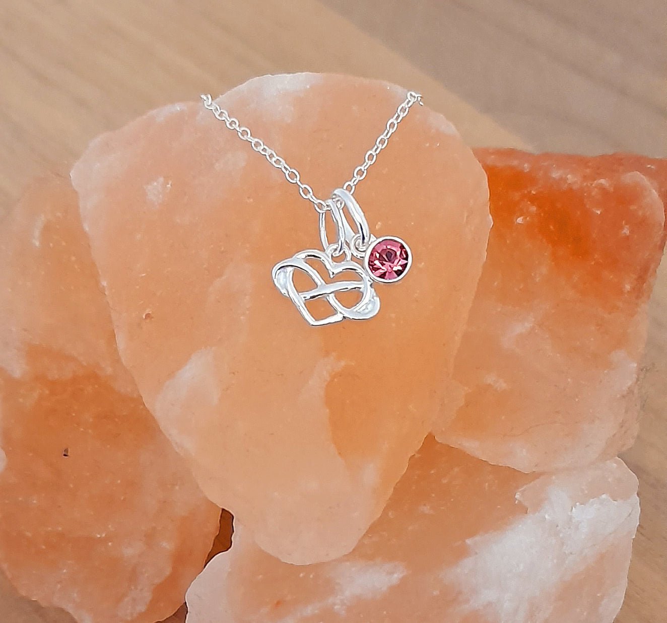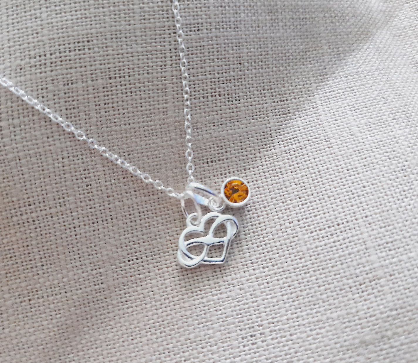 Bridesmaid Gift Infinity Heart Necklace with Birthstone in Sterling Silver 925, Personalised Jewellery Gift