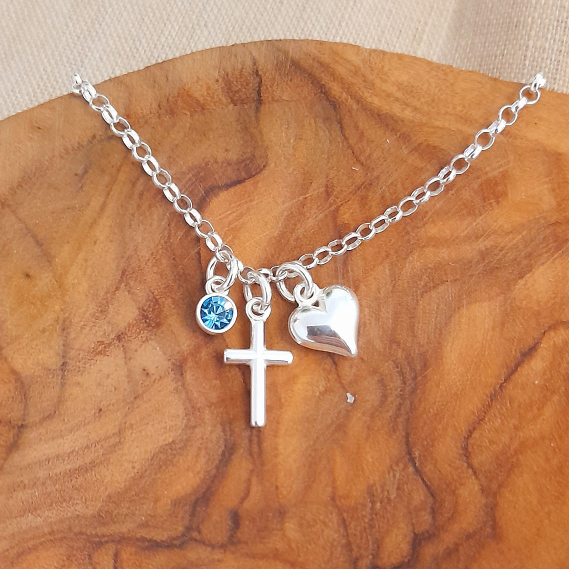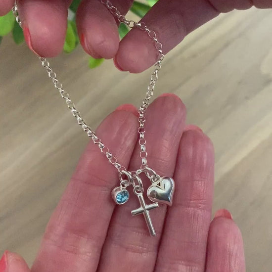 Cross Heart Bracelet with Crystal Birthstone | Sterling Silver 925 | Personalised Jewellery Gift