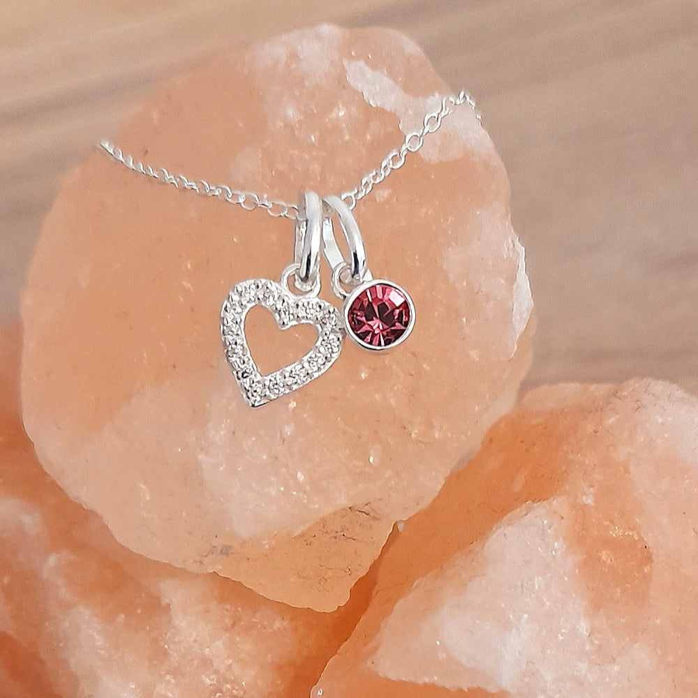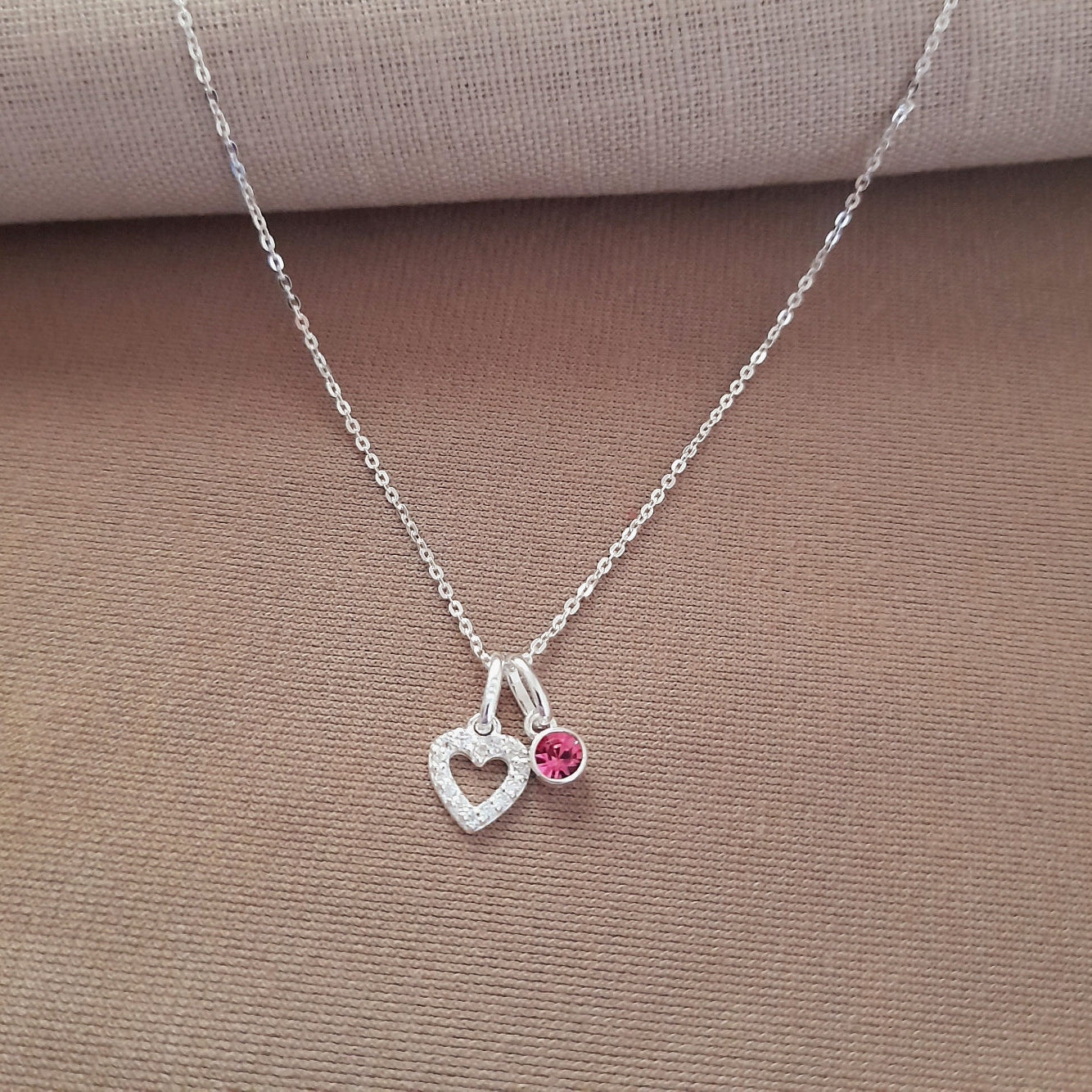 CZ Heart Birthstone Necklace | 925 Sterling Silver Personalised Jewellery