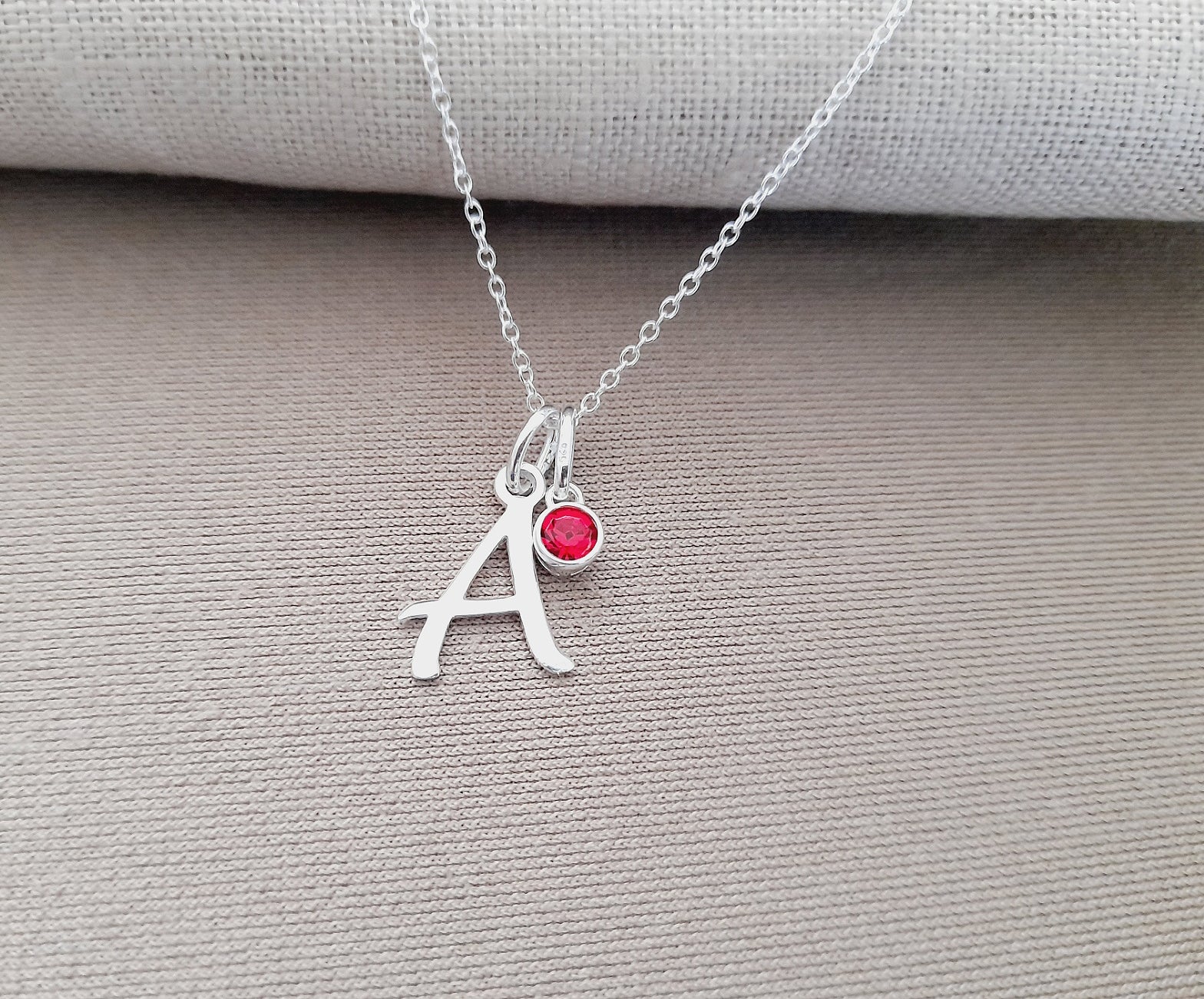 Daughter Letter Necklace with Birthstone in Sterling Silver 925, Personalised Jewellery Gift