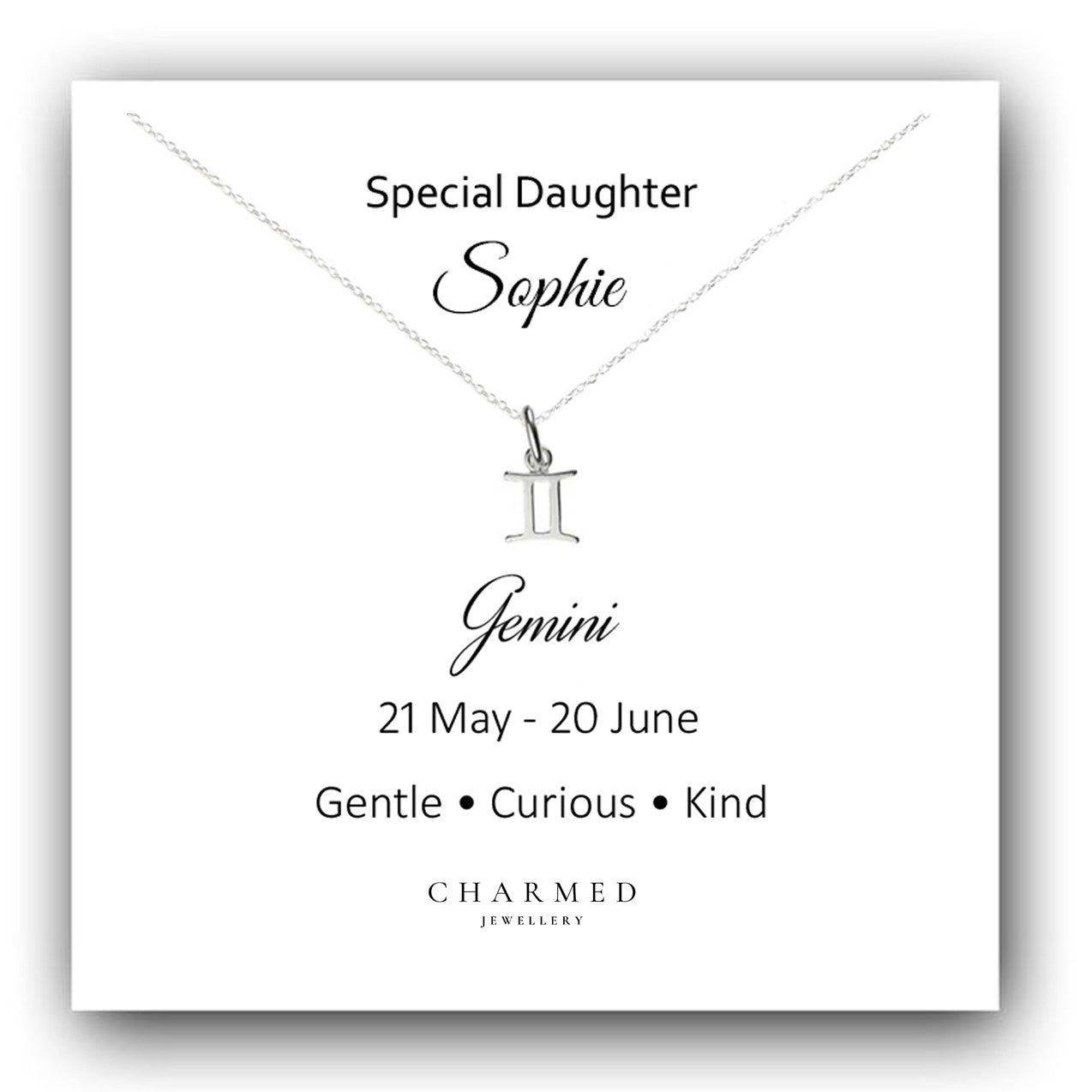 Daughter Zodiac Necklace in Sterling Silver 925, Personalised Jewellery Gift