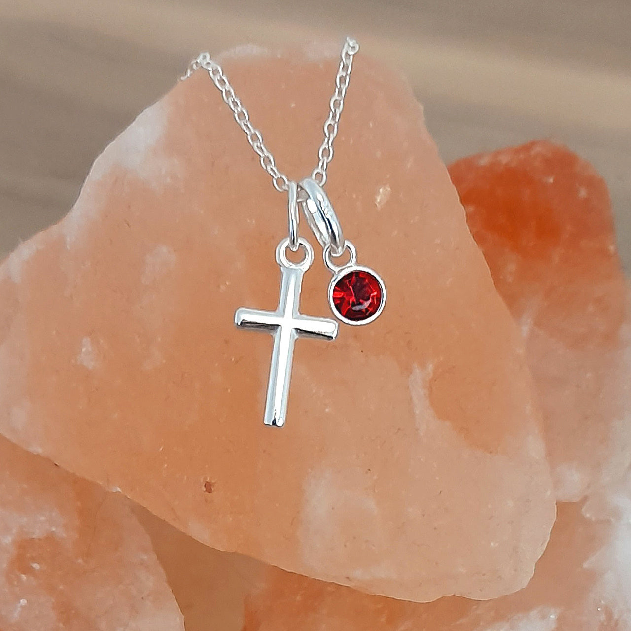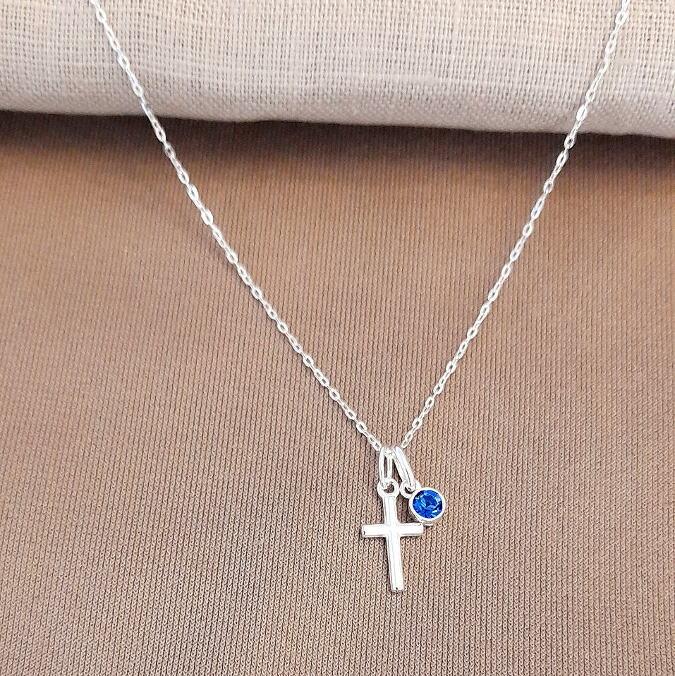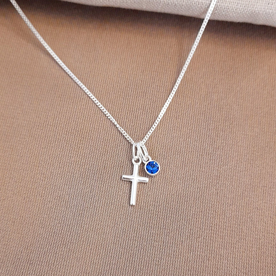 First Holy Communion Gift, Cross Birthstone Necklace Sterling Silver 925, Personalised Jewellery Gift