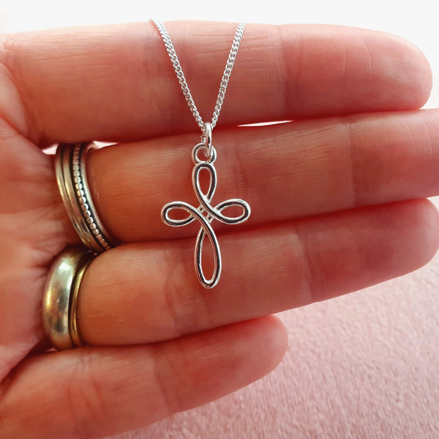 Beautiful cross pendant with a unique infinity design, in sterling silver 925. A perfect communion gift for a special girl. Let her know how special she is, with this personalised gift.
