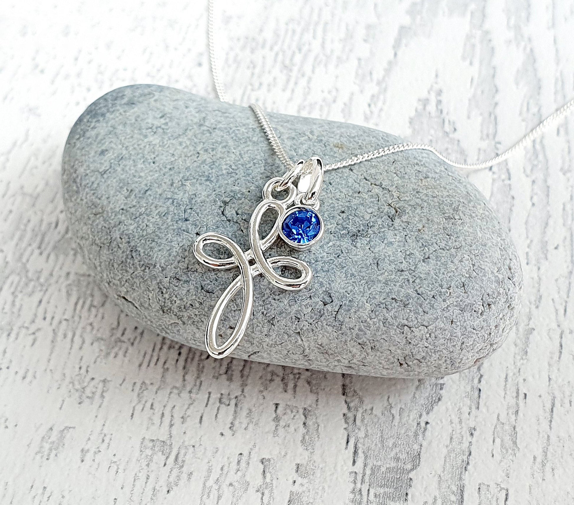 First Holy Communion Gift, Eternity Cross Necklace with Birthstone in Sterling Silver 925, Personalised Jewellery Gift