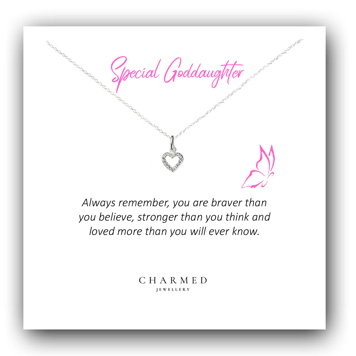 Choose this stunning heart necklace as a beautiful gift for goddaughters. A perfect personalised gift for her, to let her know how much she means to you.
