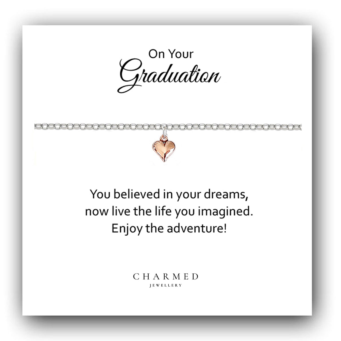 Choose this stunning heart bracelet as a beautiful gift for a Graduation. A perfect personalised gift for her, to let her know how proud you are.