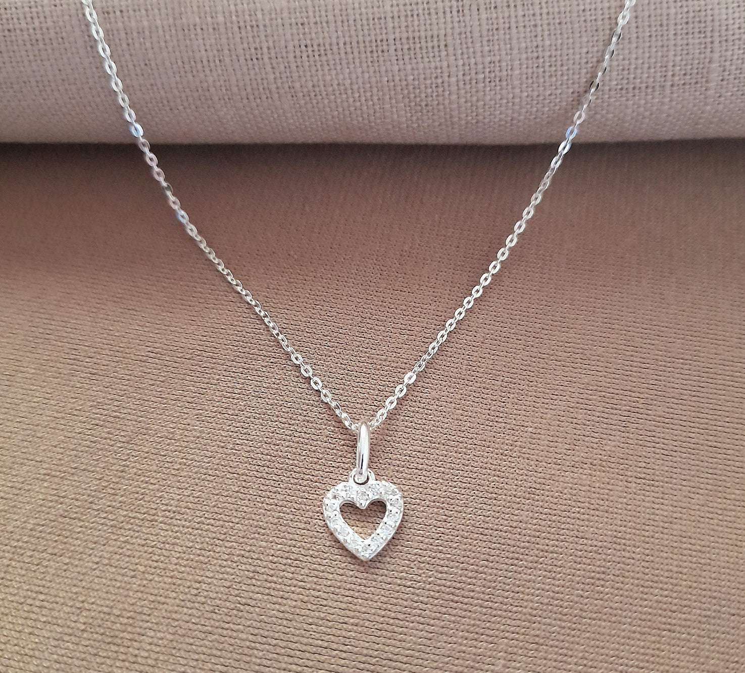 Striking open heart pendant featuring Cubic Zirconia stones, in sterling silver 925. A unique birthday gift for your granddaughter.