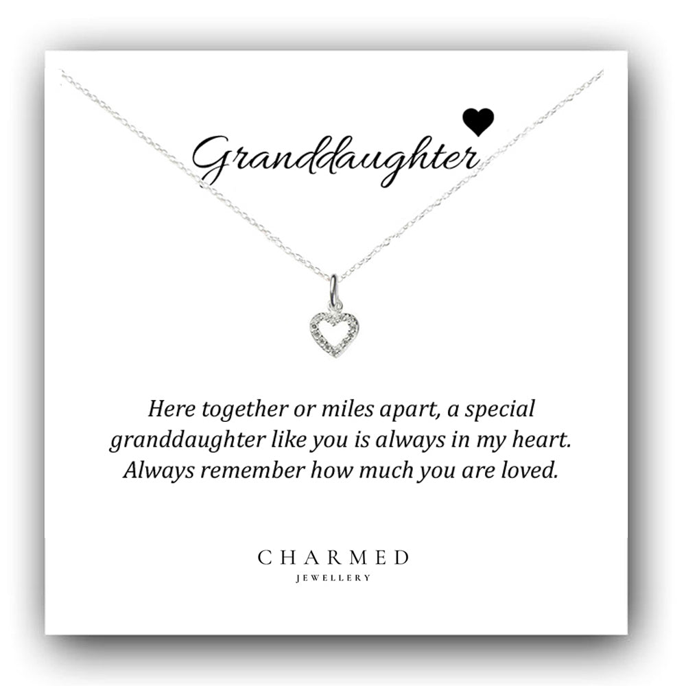 Granddaughter CZ Heart Necklace in Sterling Silver 925, Personalised Gift