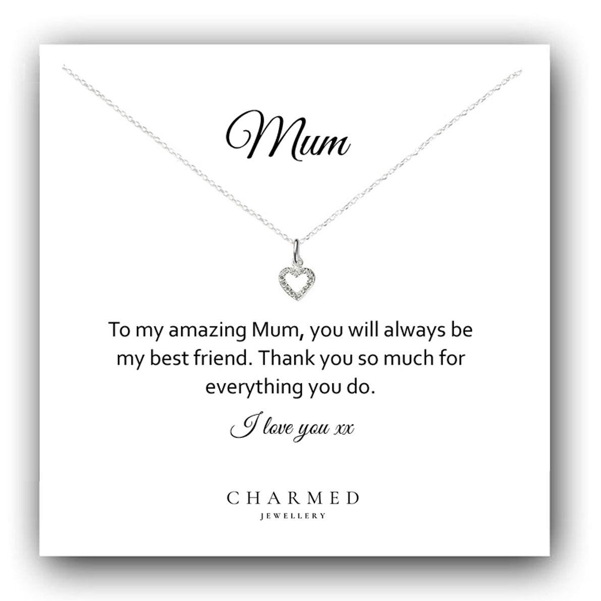 Choose this stunning heart necklace as a beautiful gift for mum. A perfect personalised gift for her, to let her know how much she means to you.