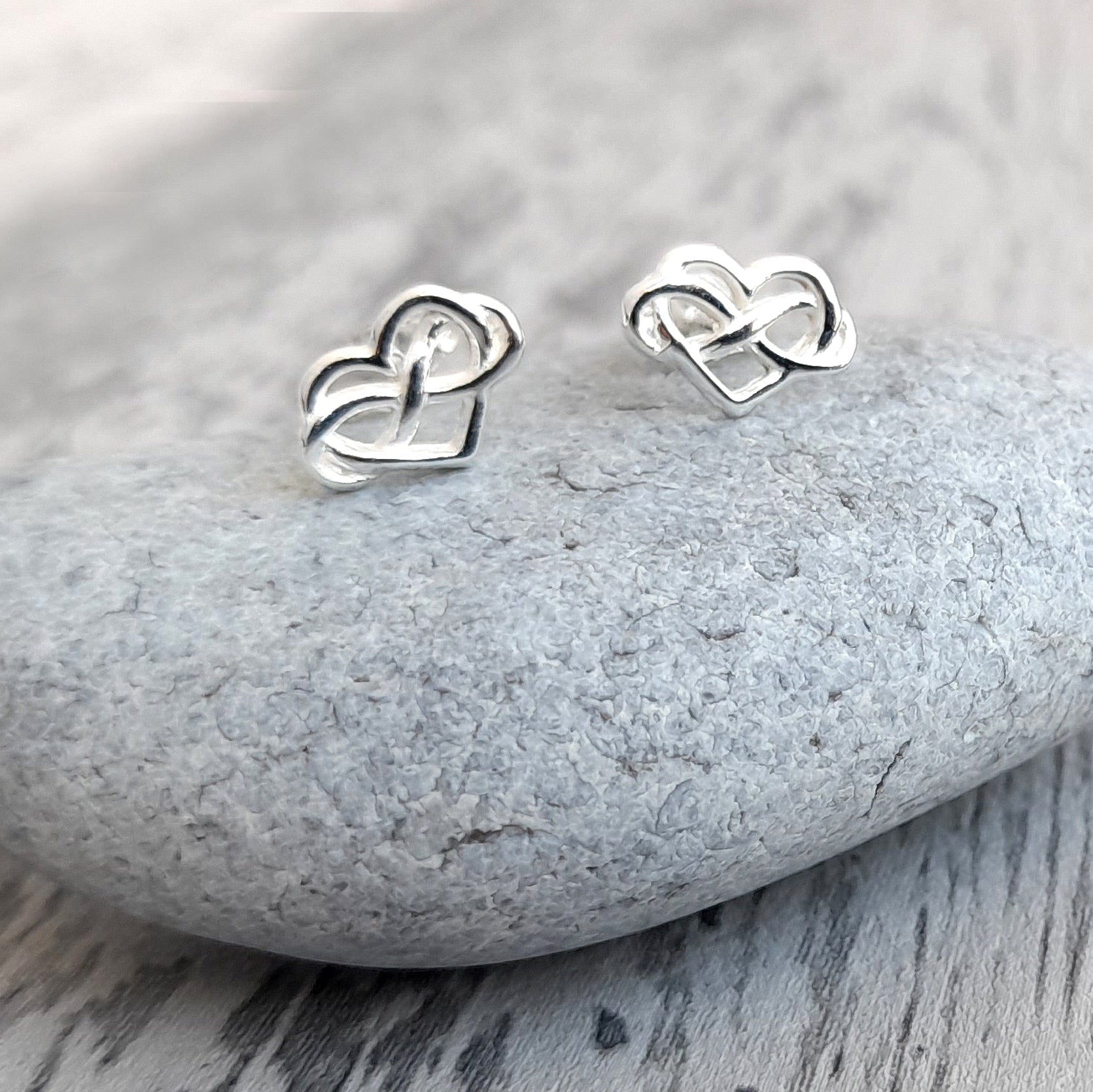 Niece Gift, Infinity Heart Stud Earrings Sterling Silver 925, Personalised Jewellery Gift
