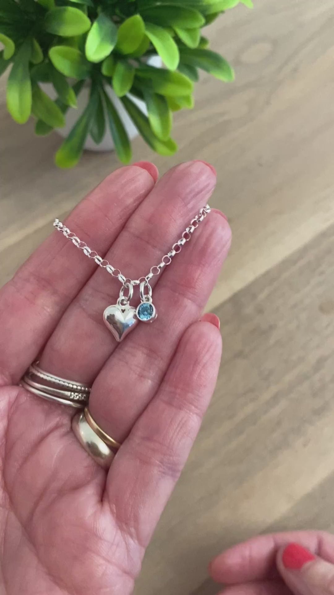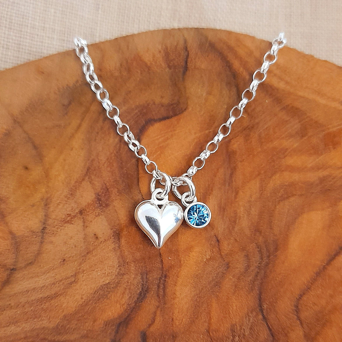 Silver Puffy Heart Bracelet with Crystal Birthstone | Sterling Silver 925 | Personalised Jewellery Gift