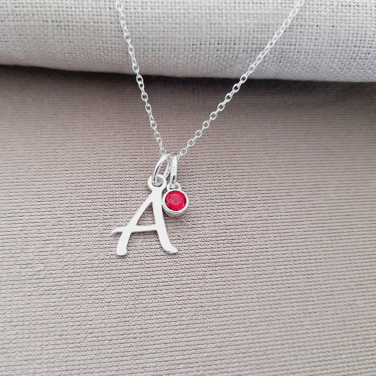 Sister Gift, Initial Letter Necklace with Birthstone in Sterling Silver 925, Personalised Gift