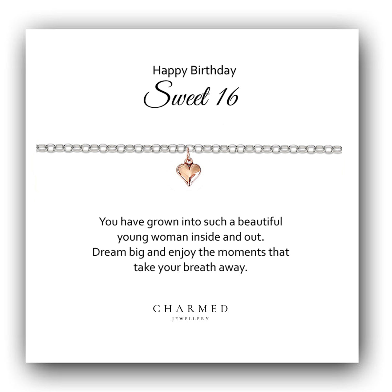 Choose this stunning heart bracelet as a beautiful gift for a Sweet 16. A perfect personalised gift for her, to let her know how much she means to you on her 16th birthday.