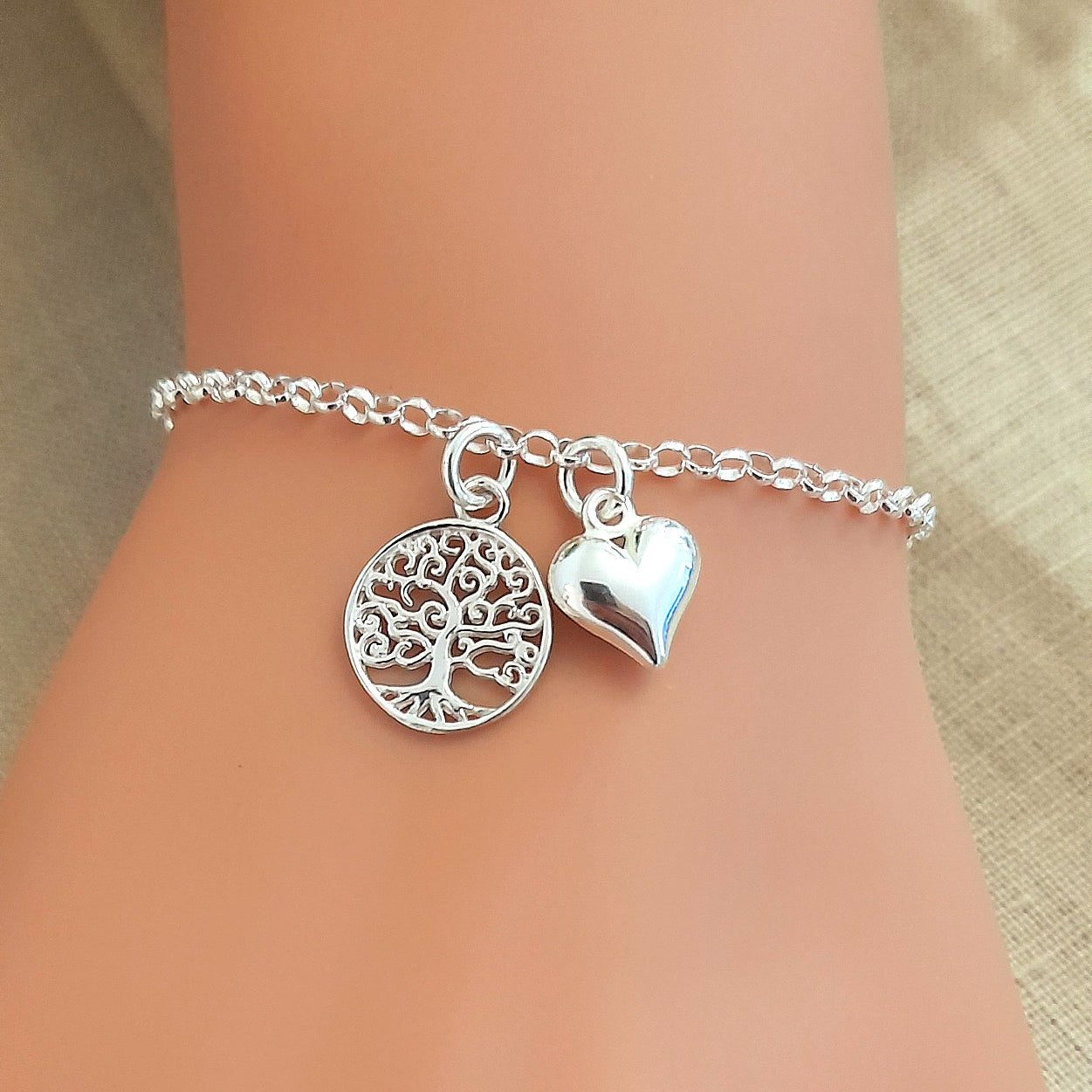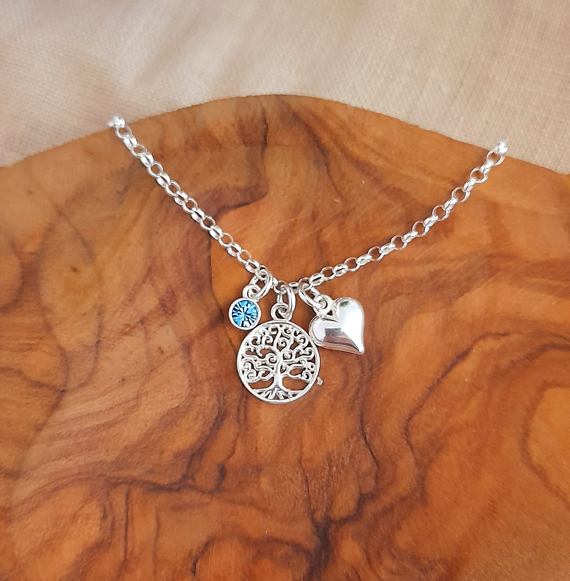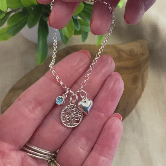 Tree of Life Bracelet with Puffy Heart & Birthstone | Sterling Silver 925 | Personalised Jewellery Gift